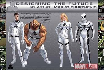 Tom Brevoort, Editor Ejecutivo de Marvel, vino con la idea de poner al equipo en trajes blancos para jugar con el aspecto de científico y astronauta de Sue, Reed y Ben. Comenta Djurdjevic: