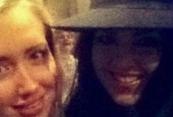 El fantasma de una anciana con ropas victorianas parece burlarse tras las dos amigas que comparten una selfie en el bar donde son habituales.