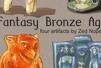 Una idea interesante que nos trae Zed Nope. Como su nombre viene a indicar, Fantasy Bronze Age Artifacts- PWYW, es un archivo con cuatro ilustraciones de cuatro artefactos/restos arqueológicos de la Edad de Bronce (Pensados inicialmente para juegos de fantasía,pero quien dice que no valen para,no se, La Llamada de Cthulhu? O cualquier otro juego…),que están en formato "paga-lo-que-quieras" con un precio sugerido por descarga de 1,78 euros.