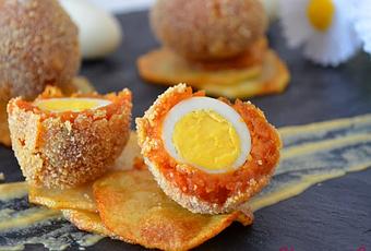 Ingredientes:1 doce de huevos de codorniz1 farinato1 huevo batidopan ralladoaceite para freír