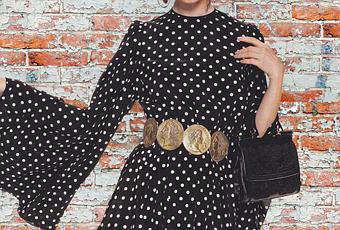 Vestido, diadema, pendientes, cinturón, bolso y sandalias de Dolce&Gabbana.