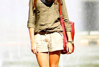 Un look sencillo y cómodo para estar todo el día por allí. Elegí este por dos razones, porque quería estrenar usa cuantas cositas (jaja) y porque quería ir con algo de tendencia, y si os habéis fijado en las tiendas o resistas, el color caqui y el burdeos vienen pisando fuerte. En look en sí no dice nada, pero creo que el pañuelo de Natura le da el toque perfecto. Como véis en las últimas fotos, luego tuve que cambiar de shorts porque se me mecharon de chocolate! jaja Así que me puse mis shorts favoritos (que últimamente no me quito de encima) y violá! Otro look mas sencillo aún. Que os parece la elección??