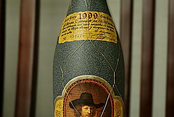 Buscando un Marqués del Riscal Gran Reserva –que no se encontró- Cris se depara con esta botella que atrae desde su particular diseño. Este vino pertenece al grupo que no hemos visto en Curitiba –ni en pintura-, y además era la única botella que les quedaba de esta añada, así que no había que pensarlo mucho en traerlo para casa.