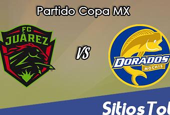La transmisión por TV en México del partido entre FC Juarez vs Dorados de Sinaloa en la Copa MX se podrá ver en vivo en el horario antes mencionado por UTDN (Univisión Televisa Deportes Network) que es quién tiene los derechos oficiales de transmisión de este partido y que se puede ver por tv de paga en los siguientes canales Cablevisión Monterrey 502, Izzi 502, Star Tv 509, Star Network 507, Sky 554, Cable Plus 64, Megacable 311, Gigacable 311, Totalplay 530, Cablecom 214, Telecable 32 y Cablemás 502.