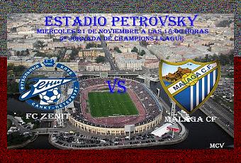 Este miércoles a las 18:00 horas el Málaga juega en el estadio Petrovsky de San Petersburgo ante el FC Zenit el partido correspondiente a la 5ª jornada de la Champions League.Acude el Málaga a este partido con la clasificación en el bolsillo, jugándose solo la primera plaza la cual tendría asegurada con tan solo un punto bien en este partido o en el último que le quedaría por jugar en la Rosaleda ante el Anderlecht.