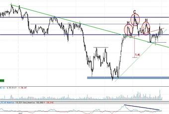 Durante los últimos meses del 2013 y ya en el 2014 vimos al valor dibujándonos un patrón hombro-cabeza-hombro muy claro, figura de cambio de tendencia, y que podría indicarnos nuevos movimientos a la baja. Movimientos que, si tenemos en cuenta la longitud desde su máximo en la cabeza hasta la línea clavicular y la proyectamos, puede darnos un potencial bajista hasta la zona de los 7’50 euros, tal y como podemos observar en el gráfico. Y no sólo eso, sino que todavía nos quedaría espacio para seguir cayendo, existiendo la posibilidad de ir de nuevo a testear el soporte de los 5 euros.