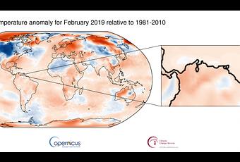 De acuerdo al informe publicado ayer por Copernicus, a nivel mundial, febrero de 2019 estuvo cerca de 0,5 °C más cálido que el promedio de febrero de 1981-2010. Partes de Europa experimentaron unos días de temperaturas cálidas récord. En la media del mes, las regiones europeas con la mayor diferencia con respecto a la normal fueron Rusia occidental y Finlandia meridional. Otras regiones con temperaturas muy por encima de la media incluyen Siberia central, la punta más oriental de Siberia y Alaska. Las temperaturas fueron más bajas que el promedio en el oeste de Canadá.