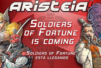 El 23 de marzo de 2018 se pone a la venta en tiendas la primera expansión de Aristeia!, Soldiers of Fortune, con un precio de 29,99 euros. Así lo acaban de anunciar en la web oficial del juego y en las RRSS.