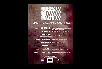 Nubes de Malta empieza el 2016 con fuerza, con una buena propuesta de fechas y aterrizando en Madrid.Nubes de Malta quieren que su La Camara Lenta tour 2016 sea fuerte y lleno de directos, empiezan en el Actual Festival, posteriormente Madrid (Costtello CLub) y Segovia serán las siguientes fechas para llegar a varios Fnacs otras sorpresas más.