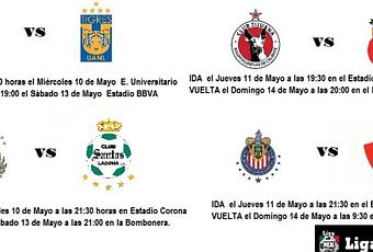 Se han dado a conocer los horarios de los partidos para los cuartos de final de la liguilla del Torneo Clausura 2017. En donde los 8 clasificados intentarán pasar a la siguiente ronda.