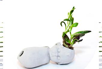Y dentro de este grupo de objetos que está en el límite entre lo tétrico y siniestro y lo sútilmente bello destacamos la serie Tumores verdes, un grupo de extraños seres que renacen de su olvido como nuevos híbridos resucitados gracias a las manos de su autora y a esas criaturas verdes, vegetales y plantas saliendo de sus entrañas, unas curiosas macetas desmembradas, rotas, estropeadas y solitarias que con su pequeño brote verde como único acompañante nos miran y consiguen enternecernos.
