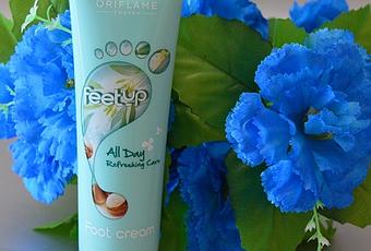 Foto: OriflameY ahora pasamos a la crema para los pies “Feet Up – All Day Refreshing Care” de ORIFLAME. Descripción del producto:La crema para los pies “Feet Up – All Day Refreshing Care”de ORIFLAME tiene una fórmula súper nutritiva que deja los pies frescos e hidratados durante todo el día.
