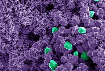 Como prometí la semana pasada os muestro la segunda parte de imágenes presentadas en los sets de Flickr de FEI Company, una empresa dedicada a la fabricación y distribución de microscopios electrónicos de barrido (SEM) o microscopio electrónicos de transmisión (TEM). En este caso se trata de minerales y de productos fabricados. Los colores son artificiales. Clic para ampliar.