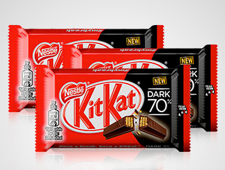 - Kit kat dark 70% (3 unidades), 4 barritas de crujiente galleta recubiertas de chocolate negro 70%.