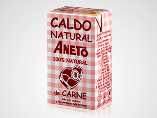 - Caldo de carne Aneto (1 unidad de un litro, ya está agotado) es un caldo de la cocina tradicional elaborado sólo con ternera asada (morcillo/jarrete, espinazo, falda y entraña) y verduras frescas que se sofríen con ajo y aceite de oliva durante 2 horas. Luego se cuece todo en olla a fuego lento durante 3 horas con un ligero toque de laurel y tomillo.