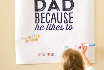 Este cartel del Día del Padre es sin duda una idea original y divertida para que los niños puedan escribir qué es lo que hace a sus padres tan especiales. No tienen que ser cosas muy elaboradas, sólo frases sencillas de porqué su padre es el mejor. Incluso si quieren pueden hacer dibujos, todo está permitido en este gran poster para felicitar a papá.