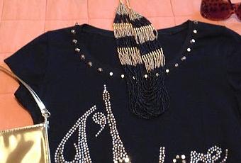 Yo os voy a enseñar un modelito que he comprado aquí en Málaga que me gusta mucho: la camiseta me encanta y por supuesto es barata (18 euros), el collar(14 euros), las gafas( 28 euros) y el bolsito (19 euros). Este conjunto va con pantalón negro tipo leggins y chaqueta de cuero negra.Os quiero enseñar este anillo que he encontrado en la