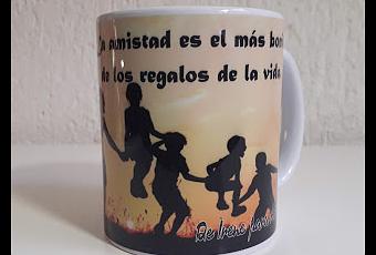 Ella eligió la frase "LA AMISTAD ES EL MÁS BONITO DE LOS REGALOS DE LA VIDA" y añadió: De Irene para Aitana.