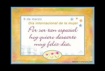 POR TODO ESTO Y MAS QUIERO FELICITAR A LA MUJER, PERO NO HOY SINO LOS 365 DIAS DEL AÑO POR SU SERVICIA AL MUNDO, PORQUE QUE HARIAMOS SIN UNA MUJER NADA. GRACIAS A TODAS LAS MUJERES.