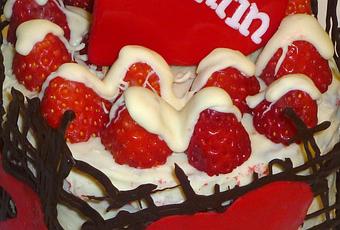 Mañana 14 de Febrero se celebra el onomástico de San Valentin. Es un día que por tradición se celebran en varios países el día de los enamorados y de la amistad. Es muy frecuente en estos días las tarjetas con dedicatorias, de aquí salen los símbolos de corazones, cupidos y el regalar rosas, en las que las parejas expresan su amor, cariño mutuamente y los que demuestran una verdadera amistad por otras. Desde aquí envió mis saludos a todos feliz día de San Valentin y agradecer vuestra compañía. En este día tan especial os quiero dedicar esta Tarta, de bizcocho bicolor por dentro y cubierta con un Ganache Blanco, decorada con fresas sobre la base y a los lados con chocolate negro, espero que os guste, FELIZ DÍA!!
