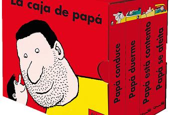 Papá está contento, papá duerme, papá conduce, papá se afeita, juega al fútbol, corre, está escondido, enamorado, celoso y cansado. ¡A veces tanmbién se enfada! La caja de papá contiene cuatro libros de cartón: Papá conduce, Papá duerme, Papá está contento y Papá se afeita.