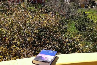 La imagen no es de muy buena calidad.Creo que no se distingue bien que el libro es el que estamos leyendo este mes, En la orilla, y posiblemente muchos no identifiquéis la mancha del fondo como el majestuoso y nevado Teide, pero quería compartir con vosotros la maravillosa mañana que he pasado leyendo y disfrutando de un día soleado, espléndido.