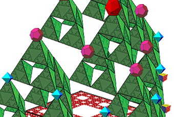 La base del árbol es una Esponja de Menger, el árbol en sí es un Tetraedro de Sierpinsky, mientras que la estrella que lo adorna es un prisma formado por 3 copos de nieve de Koch.