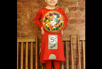 Empezamos por el que más nos ha llamado la atención: ¡el disfraz de máquina de chicles! Para la parte de la bola se ha utilizado un bol de plástico transparente, de estos típicos de ensalada, y parece que en el interior tiene caramelos de verdad (pero siempre podríamos hacer algo parecido con globitos de colores, ¿verdad?).