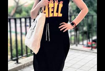Además, pantalones muy originales y cómodos de Noni Barea, pendientes de Muy Perra Callejera y bolsa de Silvia Calles (La Antigua)