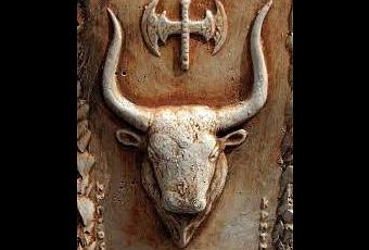 Uniendo esto, tenemos la aparición de símbolos del hacha doble en Çatalhöyük, que datan del Neolítico y donde también aparecen cabezas de bovino.Pero aquí no parece que se decante por un lado o por otro con claridad.