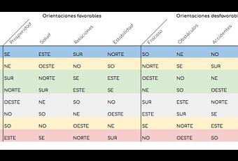 Tabla de Orientación favorables y desfavorables según tu número Kua