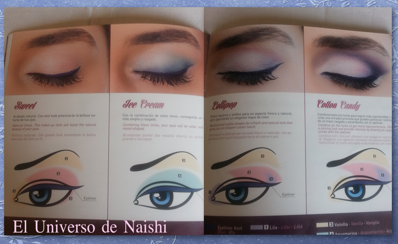 En la siguiente imagen podéis ver 4 looks de ojos que se pueden hacer con esta colección y que nos propone la marca, sin duda muy bonitos y primaverales, desde uno más natural (izquierda) a uno más cargado (derecha).