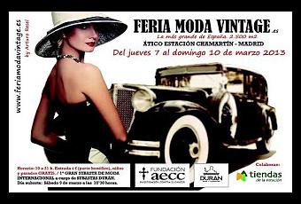 Del jueves 7 al domingo 10 de marzo de 2013 tuvo lugar la edición de Primavera de la Feria de Moda Vintage de Chamartin. Como en anteriores ediciones se pudo disfrutar, en la planta ático de la Estación de Chamartin, de más de 2.000 metros cuadrados de magia vintage. Una vez más la Feria se unio a la AECC y parte de los beneficios obtenidos en las entradas se destinarán a la investigación de la lucha contra el cancer de mama.