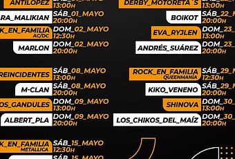 Los conciertos serán los sábados y domingos de mayo. Uno a las 13:00 horas del mediodía y otro a las 20:00 de la tarde. Con una programación de artistas de lo más variopinta.