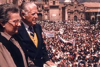Fernando Belaunde Terry fue presidente de la República del perú en dos períodos: 1963-1968 y 1980-1985. Nació en Lima el 7 de octubre de 1912. Hijo de Rafael Belaunde Diez Canseco y de Lucila Terry García. Cursó sus estudios primarios en el colegio de la Recoleta, y los secundarios en París porque su padre fue desterrado. En esa ciudad inició los correspondientes a electricidad y mecánica industrial. En Estados Unidos estudió en la Universidad de Miami y en la de Austin en Texas, donde obtuvo el título de arquitecto en 1935. Regresó al Perú y en 1937 fundó la revista El Arquitecto Peruano. En 1947 fue incorporado como catedrático de Urbanismo en la Pontificia Universidad Católica de Lima; ese año funda el Instituto de Urbanismo del Perú que después fue integrado a la Escuela de Ingenieros.