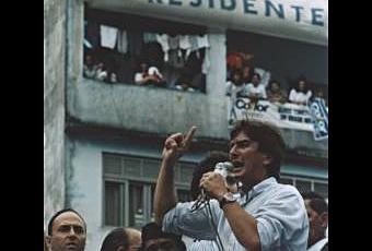 El político y candidato presidencial brasileño Fernando Collor de Mello emprendió su campaña electoral en 1989 como miembro del recién constituido Partido de la Reconstrucción Nacional (PRN). Fue el primer presidente de Brasil elegido por votación popular en 30 años y tomó posesión de su cargo el 15 de marzo de 1990. Impuso un estricto programa de austeridad que incluía la fusión y reducción de 24 organismos estatales. En 1992 fue acusado de corrupción y tuvo que dimitir.