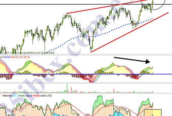 Conclusión, lo más prudente sería esperar a una ruptura de la cuña, si es por arriba nos podríamos poner largos y si es por abajo, yo cerraría posiciones largas que tuviéramos, nunca ponerme corto, ya sabemos como terminamos con el último corto que propuse en Gas Narutal: trasquilados. Es un valor interesante para seguir, ya que es bastante fiable en sus movimientos, sin subidas espectaculares, por que el precio está muy extendido, pero con una tendencia alcista de las más firmes y estables del IBEX 35. El sector de la construcción europeo, parece que quiere recuperarse y está a punto de romper una resistencia importante, si es asíprobablemente Ferrovial sea de los que mejor lo siga haciendo, e intente conseguir máximos históricos.