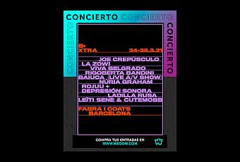 26/3 Rigoberta Bandini27/3 (12:00) Ladilla Rusa27/3 (16:30) Rojuu + Depresión Sonora27/3 (20:00) Baiuca (Live A/V Show)28/3 (12:00) Joe Crepúsculo28/3 (20:00) La Zowi