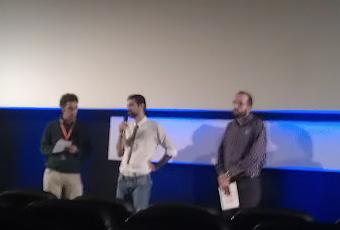 El director, Ektoras Lygizos, exponiendo lo que había tras su film, en la sala. Por cierto, el traductor daba muestras de poca experiencia. Un aspecto mejorable del Festival.