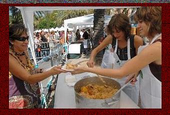 Los fuegos, las ollas y sartenes gigantes que llamamos paelleras, los ingredientes diferentes de distintos colores y su preparación. Los pollos, pescados y carnes varias son troceadas. Los aromas de las especies y los primeros herbores más las puestas de cocina improvisadas en la calle hacen un espectáculo fuera de serie para todos los sentidos.