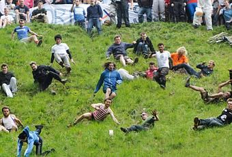 Cada año, en el la colina Cooper’s Hill Cheese-Rolling and Wake, se reúnen cientos de personas, unos para participar y otros para animar a los participantes, para que se arriesguen a bajar por la colina de tras del queso y felicitarlos al final de la misma.