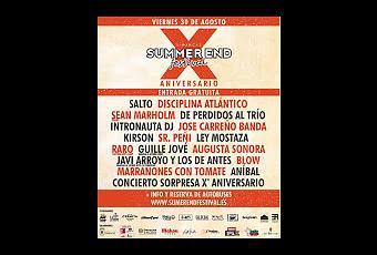 El Summer End celebrará su X edición y está todo preparado ante este año tan especial para el festival de Valladolid. Summer End es un festival que es casi una tradición, ante su X edición, el festival que se celebra en Simancas se prepara para dar una fiesta por todo lo alto.Dos escenarios y una mezcla de artistas locales y artistas nacionales junto a una sorpresa por este aniversario. Hablamos de nombres como Salto, Sean Marhol, Disciplina Atlántico, Ley Mostaza, Raro y muchos otros que el 31/8 estarán en Simancas y un show final en la Sala Kafka de la mano de Marrones con tomate.