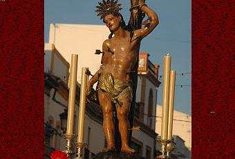 Sebastián, hijo de familia militar y noble, era oriundo de Narbona, pero se había educado en Milán. Llegó a ser capitán de la primera corte de la guardia pretoriana. Era respetado por todos y apreciado por el emperador, que desconocía su cualidad de cristiano. Cumplía con la disciplina militar, pero no participaba en los sacrificios idolátricos. Además, como buen cristiano, ejercitaba el apostolado entre sus compañeros, visitaba y alentaba a los cristianos encarcelados por causa de Cristo. Esta situación no podía durar mucho, y fue denunciado al emperador Maximino quien lo obligó a escoger entre ser su soldado o seguir a Jesucristo.El santo escogió la milicia de Cristo; desairado el Emperador, lo amenazó de muerte, pero San Sebastián, convertido en soldado de Cristo por la confirmación, se mantuvo firme en su fe. Enfurecido Maximino, lo condenó a morir asaeteado: los soldados del emperador lo llevaron al estadio, lo desnudaron, lo ataron a un poste y lanzaron sobre él una lluvia de saetas, dándolo por muerto. Sin embargo, sus amigos que estaban al acecho, se acercaron, y al verlo todavía con vida, lo llevaron a casa de una noble cristiana romana, llamada Irene, que lo mantuvo escondido en su casa y le curó las heridas hasta que quedó restablecido.