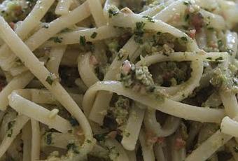 - Escurre la pasta e inmediatamente agrega el pesto, revolviendo bien.