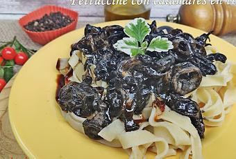 Una vez la pasta esté lista escurrimos y la añadimos a los calamares.