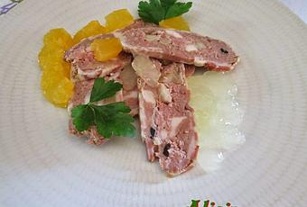 Servimos fría acompañada de una salsa o tal cual, como fiambre. Yo la he acompañado con gelatina neutra a la que le he añadido zumo de naranja y zumo de limón.