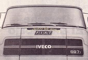 En la vieja publicidad se ve a un Fiat-IVECO 697 T, es de decir la versión de chasis corto, que se usaba de tractor para un semirremolque. El modelo 697 se fabricó desde el año 1971 hasta el año 1996. La publicidad es de finales del año 1983.