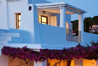 Situada en Ibiza, está diseñada respetando totalmente el estilo tradicional de la isla, con el blanco de las paredes como protagonista que combina perfectamente con el mobiliario de madera, que le da ese toque de calidez tan acogedor. La fuerte presencia del blanco y la madera se complementan con toques de azul, muebles y detalles decorativos de mimbre o ratán, espejos que combinan diversos estilos (como el de la entrada más actual y otros de estilo vintage), grandes mesas de madera para comedor con un estilo rústico, mesas de centro (también de madera) con una presencia muy notable, una combinación de sillas rústicas con otras más chic y, en el dormitorio, una gran estructura de cama con ese punto retro romántico que nos encanta y que lo hace muy acogedor.