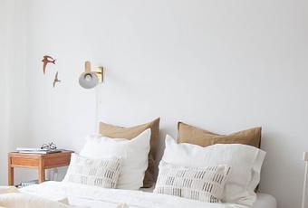 ¿Quién dice que hay que complicarse mucho la vida para tener espacios agradables y con estilo? El dormitorio que os enseñamos hoy es una prueba indiscutible de que para tener nuestra casa bonita y acogedora no hay que morir en el intento, ni complicarse demasiado. Y por eso empezamos la semana con unos fichajes deco perfectos para conseguir un dormitorio de estilo nórdico acogedor y muy sencillo. Combinando blanco, marfil, negro y algún toque de ocre, han conseguido una decoración que transmite serenidad y armonía; dos cualidades indispensables para un dormitorio. Los juegos de texturas, la lámpara de bombilla, el aplique dorado y unos colgadores a modo de dots, le dan ese aire actual y de tendencia dentro de la sencillez de todo el espacio. ¿Lo vemos?