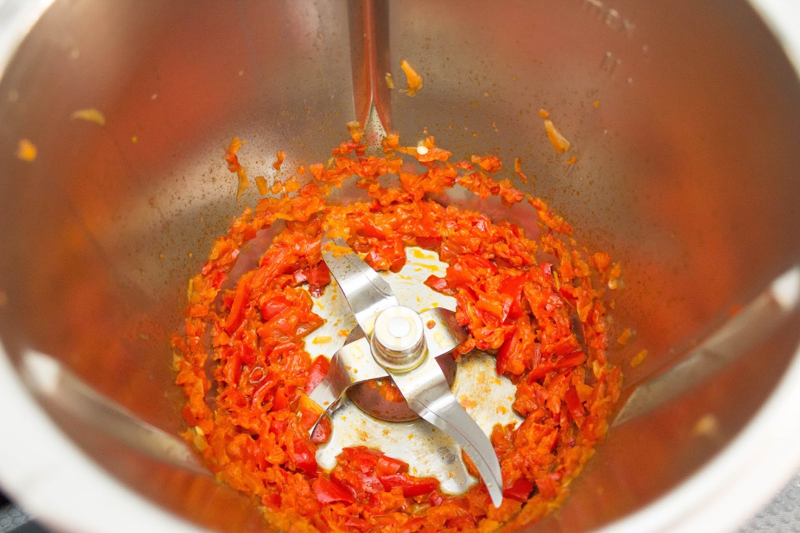 Elaboración:En primer lugar, lava el pimiento rojo bien y córtalo en trocitos.